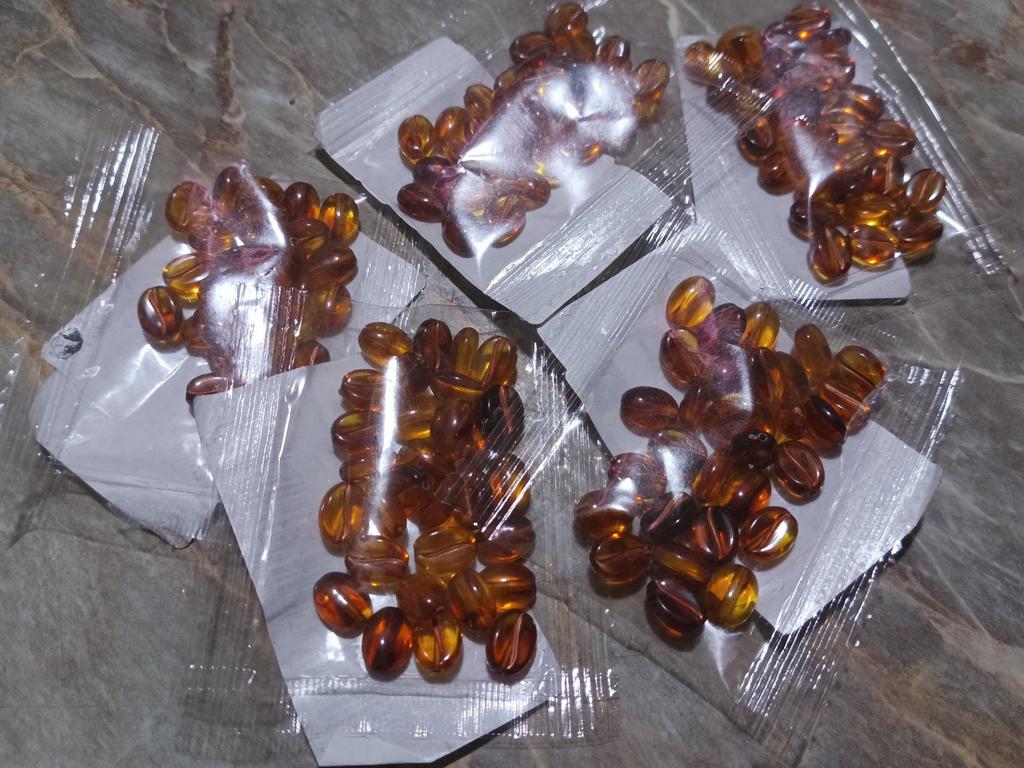 Die Perlen sind klasse, wie echte Kaffeebohnen. Sie unterscheiden sich nur durch einen farbigen Streifen auf der Oberfläche.