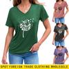 Damen-Oberteile, elegant, Sommer, modisch, lässig, bedruckt, lässiges T-Shirt, Schulterärmel, V-Ausschnitt, schlanke, fließende Tunika