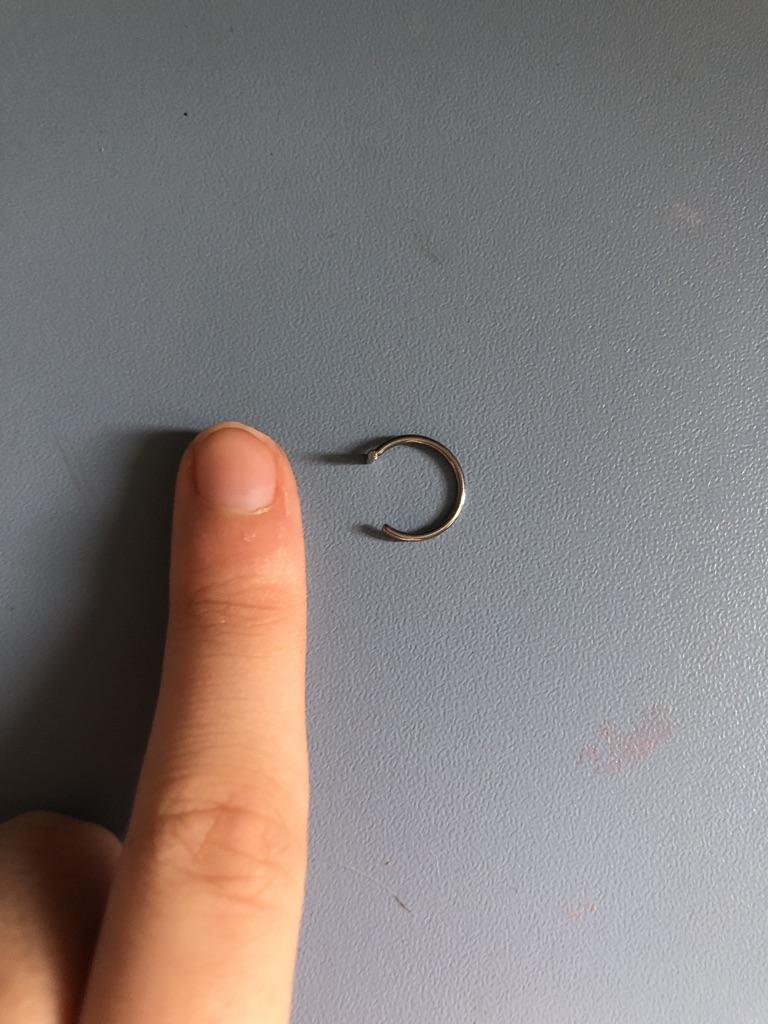 Habe gerade bemerkt, dass sie nicht das geschickt haben, was ich bestellt habe. Statt eines einfachen Piercings - einen Ring mit einem Kreis. Aber die Qualität ist ausgezeichnet. Ich hatte große Angst, dass es zu groß sein würde, aber es passt perfekt.