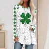 Modisches Damen Freizeit Locker Rundhals Langarm Saint Patrick Aufdruck T-Shirt Top