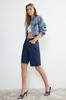 Modische hellblaue, zerrissene Jeansshorts und Bermudas mit hoher Taille für Damen