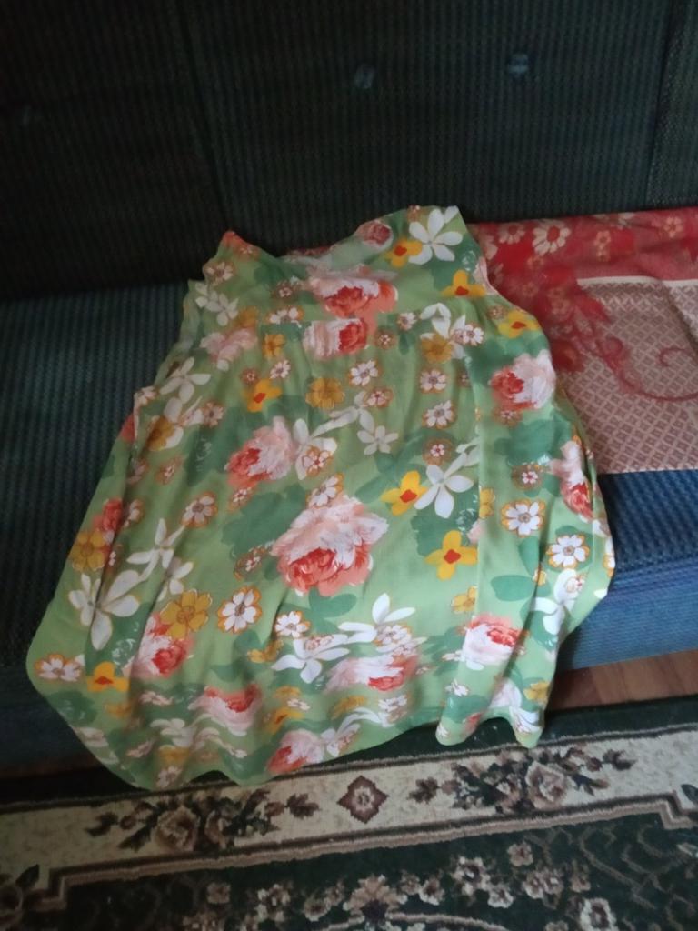 Das Sommerkleid ist kurz, knapp über dem Knie. Dies war jedoch gemäß der Beschreibung des Dimensionsgitters zu erwarten. Der Stoff ist schön. Der einzige wesentliche Nachteil ist die Silhouette. Das Kleid ist gerade, tatsächlich hat der Schnitt minimale Falten, die keine Ausdehnung und eine freie Silhouette ermöglichen.