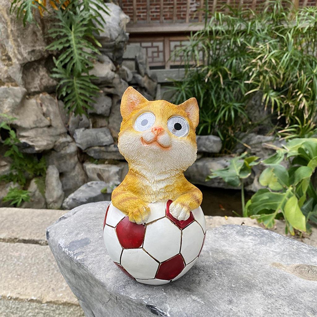 - 【Niedliche Form】: Hübsche und kreative Fußballkatzenfigur mit lebensechter Form, die Ihrem Garten eine warme Atmosphäre verleiht und eine niedliche und lustige Atmosphäre schafft.