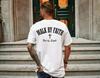 WALK BY FAITH NOT BY SIGHT Slogan-Print-T-Shirts für Damen, Unisex, kurzärmelig, weiße T-Shirts, Top, 100 % Baumwolle, atmungsaktiv, lässiges T-Shirt