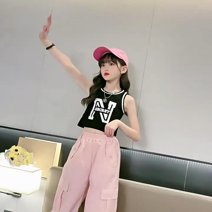 Mädchen Sommer Overalls 2024 Neue Atmungsaktive Kinder Hosen für Mittlere und Große Kinder Lose Sport Hosen Breite Bein Hosen