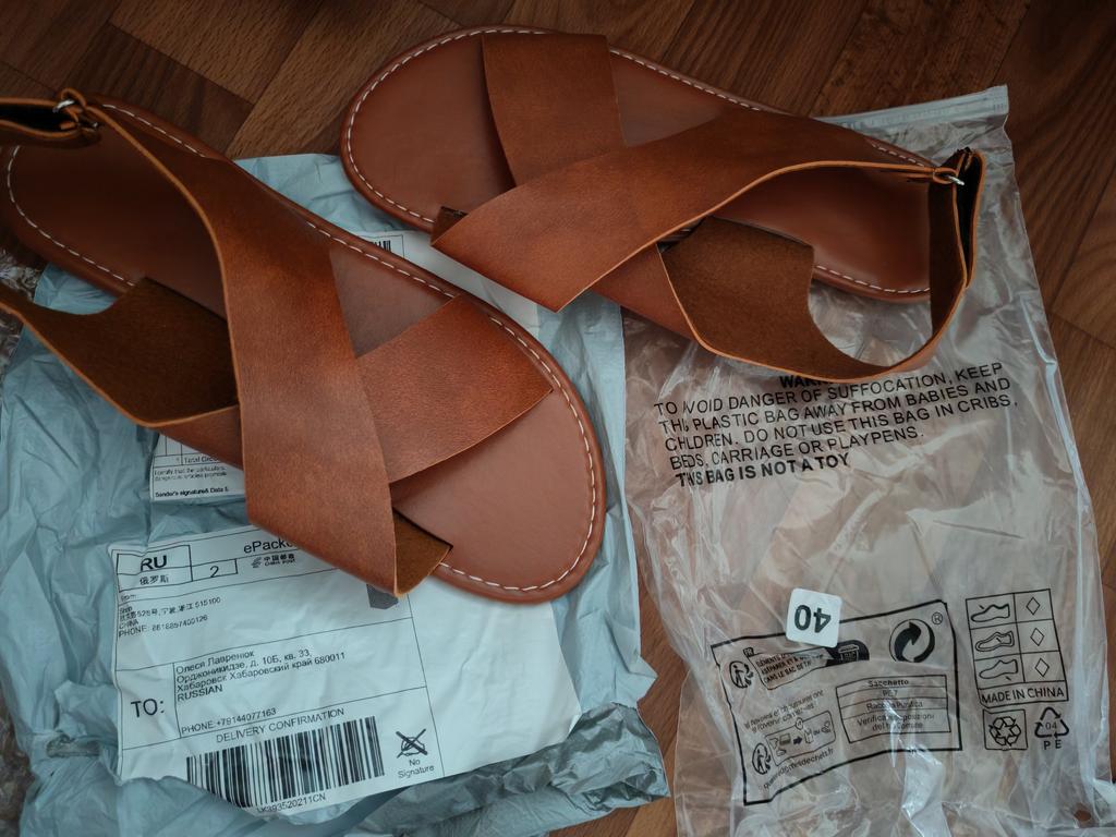 Die Größe meines Beins ist 37,5, ich habe es bestellt - 39, die Länge ist klein, der Absatz hängt, obwohl die Sandalen selbst von guter Qualität sind, aber die Größe passt nicht