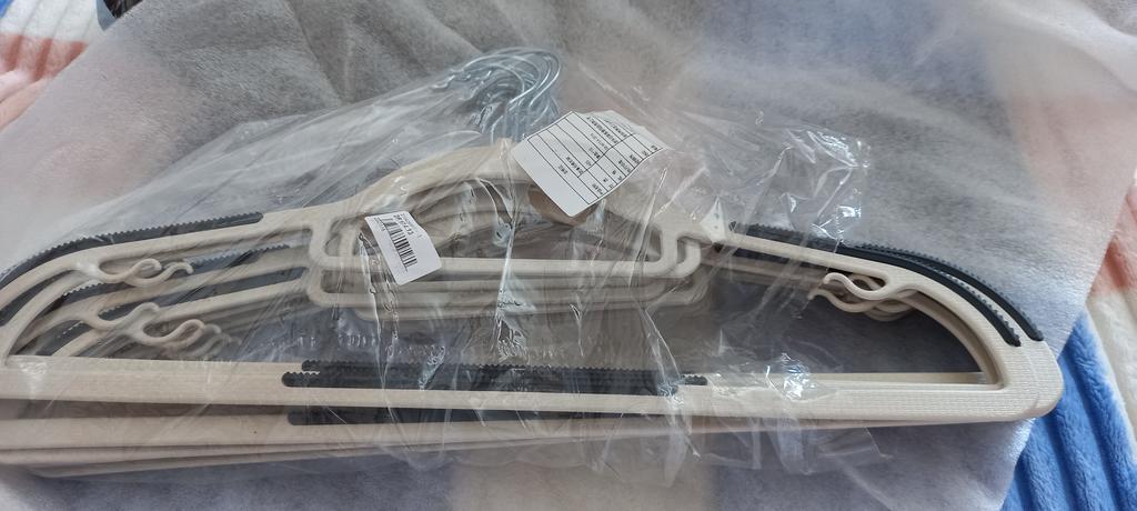 Die Kleiderbügel sind angekommen, einige Plastikteile fallen ab, können aber wieder befestigt werden. Ich gebe vier Sterne