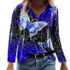 Frauen werden schöner und charmanter sein, wenn sie dieses locker sitzende T-Shirt mit fluoreszierendem Schmetterlingsprint-Design tragen.