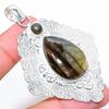Natürlicher Labradorit-Edelstein, handgefertigter Anhänger aus 925er Sterlingsilber, 7,5 cm