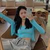 Zweiteiliges Set im koreanischen Stil Damen Herbst Bonbonfarbe Langarm Rippstrick Crop-Pullover und passende Weste