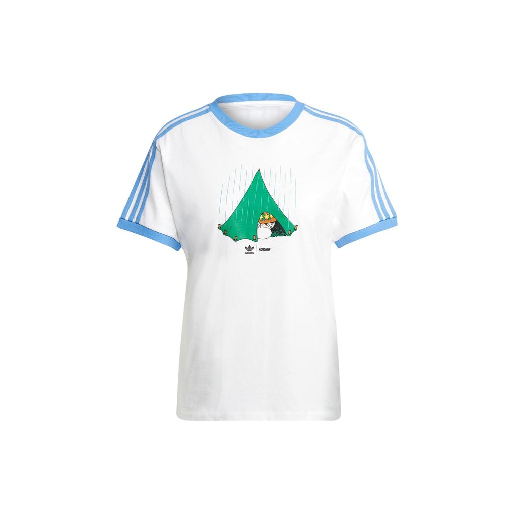 Adidas Originals X Moomin Kollaboration 3-Streifen T-Shirt mit Cartoon-Print Damen Oberteile Weiß IB9938