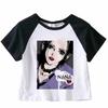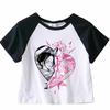 Japanisches Anime Sommer Crop Top T-Shirt Lässiges Harajuku T-Shirt Top Damen Herz Grafik Tees Anime T-Shirt Schwarz Kurze Ärmel