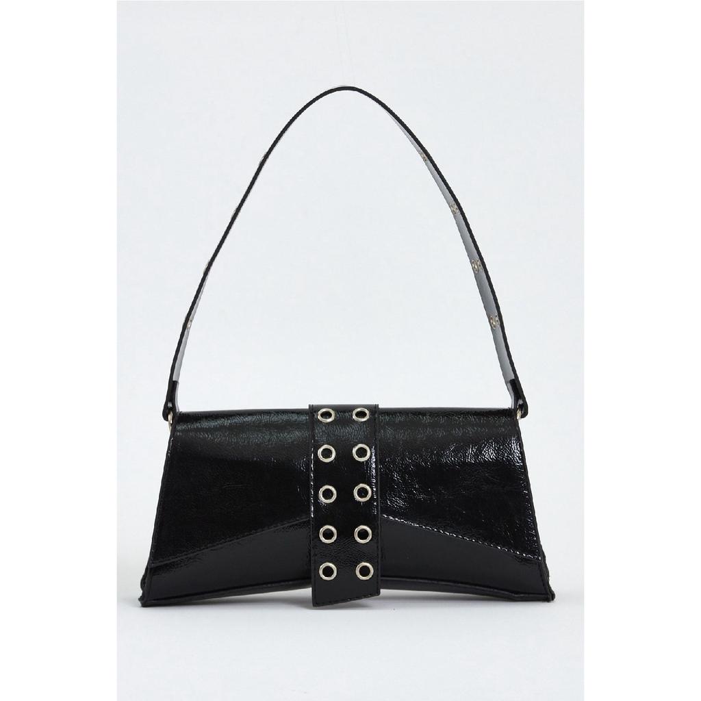 Damen Asymmetrische Nietentasche Baguette-Tasche Produktabmessungen; *Breite: 31 cm, Länge: 13 cm, Breite: 7 cm