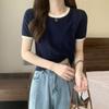 O Neck Knit Crop Top Frauen Sommer Casual T Shirt Grundlegende Sexy Streetwear Kurzarm Tops