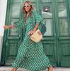 Sommer Puff Sleeve Boho Maxi Kleid Frauen Elegante 2024 Casual Floral Kordelzug V-ausschnitt Lose Urlaub Strand Kleider Party Vestidos