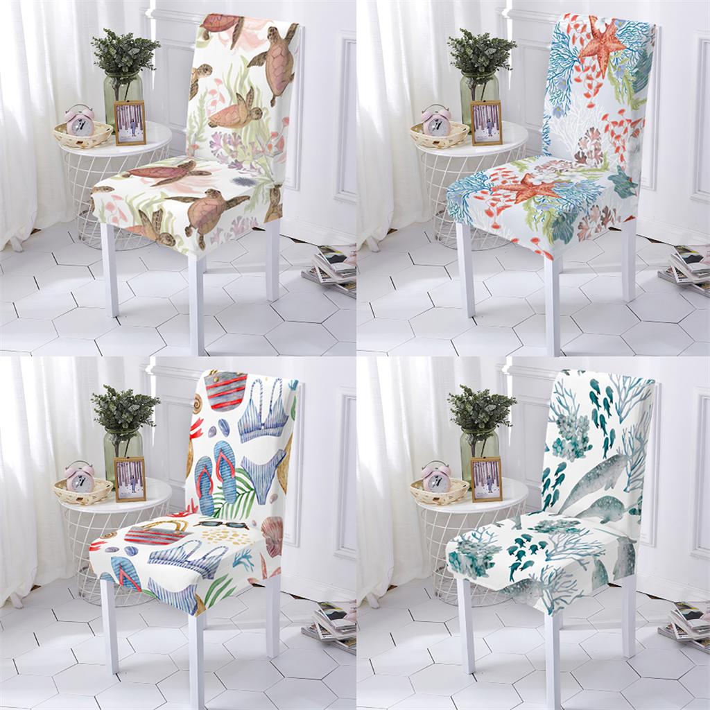 Bürostuhlbezug im Ozean-Tier-Stil, Stretch-Stühle, Küchenstuhlbezug, Pflanzenkorallenmuster, Stuhlbezug für Zuhause