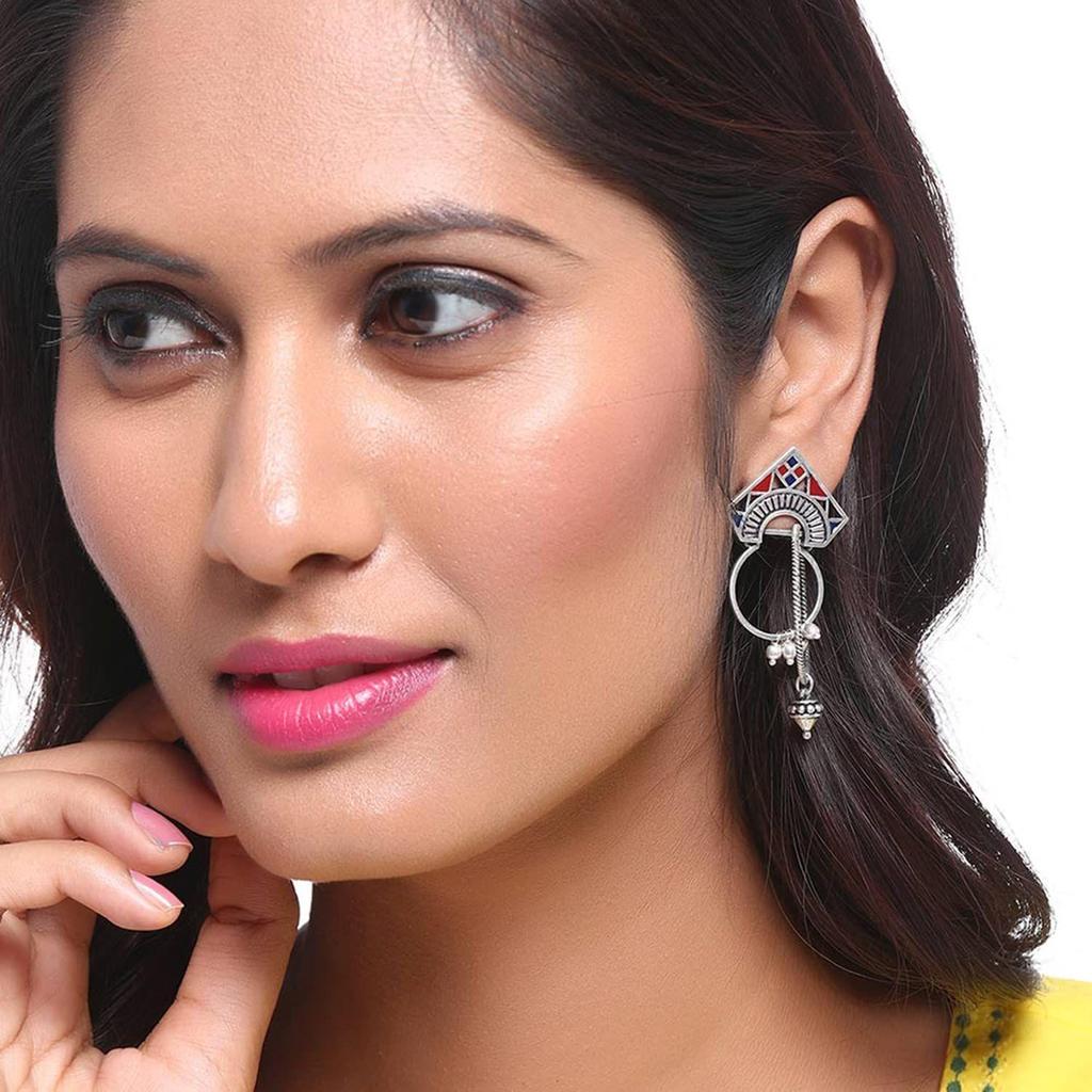 Moksha-Creolen aus Messing und Silber, oxidiert, mit weißen Perlen für Frauen und Mädchen