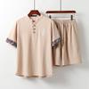 Herren-Sommer-T-Shirt mit dünnen Plattenknöpfen, Leinen, kurzärmelig, trendiger chinesischer Stil, Herren-Baumwolle und Leinen, Retro-Stehkragen, zweiteiliges Set