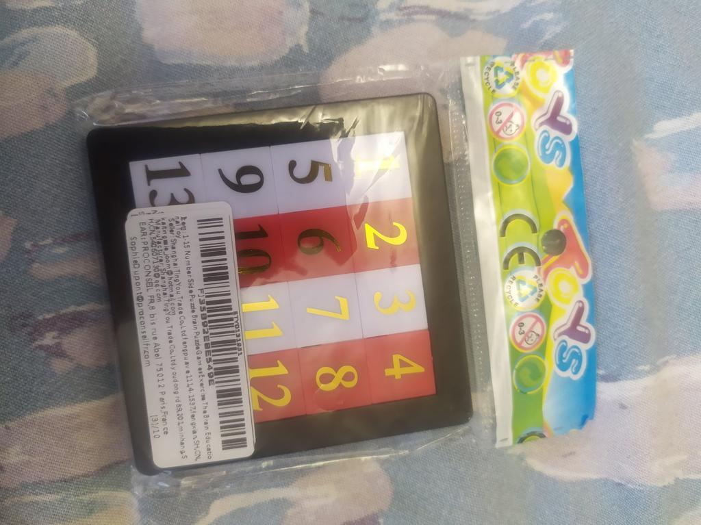 Im Prinzip ist das Spielzeug wie auf dem Foto. Wir haben es ein paar Mal zusammengebaut und die goldenen Zahlen haben angefangen, sich abzulösen.