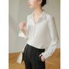 Leichtes, reifes, windiges, weißes Satinhemd für Damen, langärmelig, Frühling und Herbst, neues, vielseitiges, faltenfreies, drapiertes Pendlerhemd