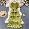 Sommer Frauen Urlaub Gürtel Lose Lange Kleid Elegante Kurzarm Rüschen Strand Maxi Kleider
