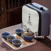 1/5/6/Stück Keramik-Teeservice, bedruckte Teekanne, tragbares Reise-Teeservice, Kung-Fu-Teekanne mit einfachem Verbrühschutzgriff, Teetassen, Teetablett, perfekt für zu Hause und