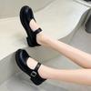 Damen Lederschuhe mit runder Spitze, Mary Janes, schwarze Mädchen, Schülerinnen, Schulschuhe, Lolita-Schuhe mit niedrigem Absatz