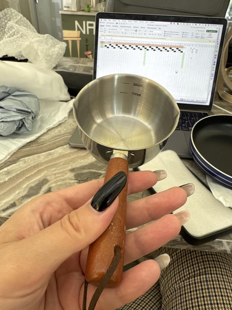 Ein sehr niedlicher Stieltopf, der in der Küche immer nützlich sein wird. Öl für Salat erhitzen. Aufgequollene Gelatine erwärmen und für eine Vielzahl von Momenten bei der Zubereitung verschiedener Gerichte. Der einzige Nachteil ist, dass er leer unter dem Gewicht des Griffs umkippt, aber wenn man ihn mit etwas füllt, steht er stabil))))
