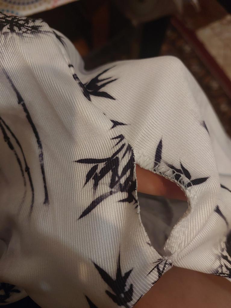 Die Hose kam gerissen an, ich hatte nicht mal Zeit, sie anzuziehen, das Loch ist groß.