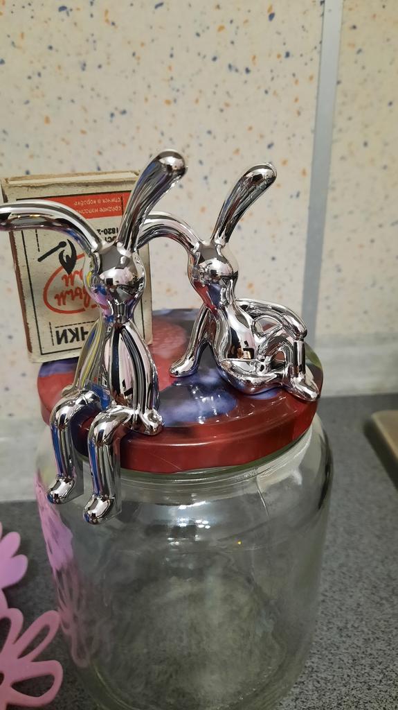 Lustige Hasen! Aus Kunststoff, leicht, glänzend. Doppelseitiges Klebeband im Lieferumfang enthalten. Während sie ohne ihn sitzen))