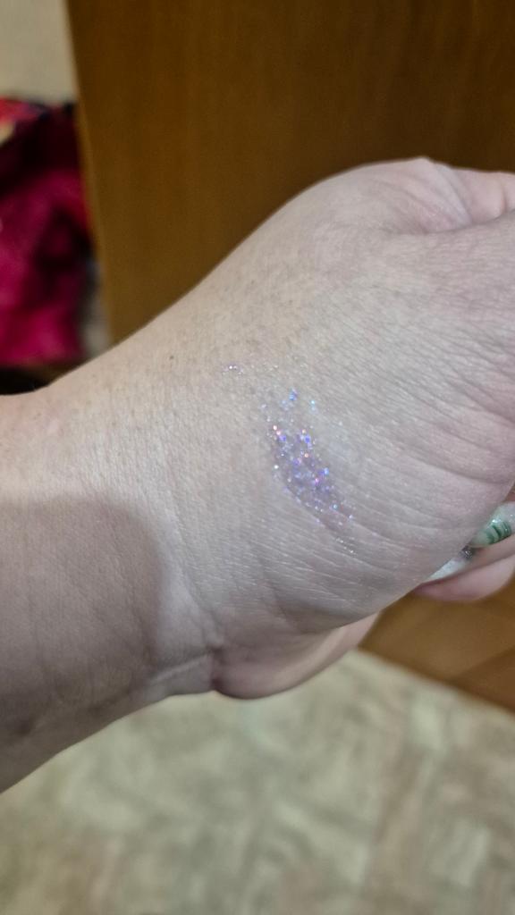 Vielleicht ist sie etwas eingetrocknet, denn die Glitzerpartikel bleiben im Tiegel und auf der Bürste sind keine, nur eine dicke, gelähnliche Substanz...