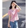Plissiertes Oberteil irreguläres kurzärmeliges Oberteil Sommer locker und Nische schlankmachendes T-Shirt Damenhemd