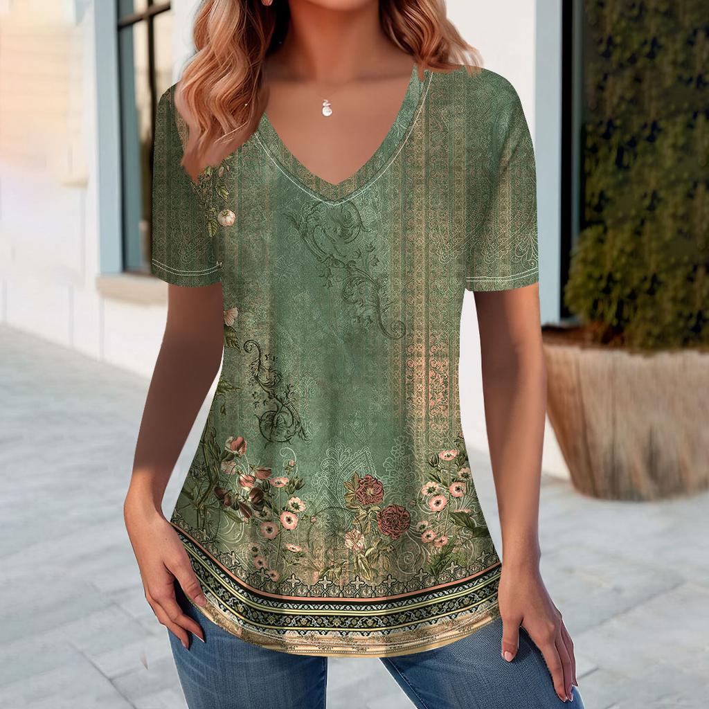 T-Shirt mit Allover-Print in Übergröße, lässiges Kurzarm-Top für Frühling und Sommer, Damenbekleidung in Übergröße