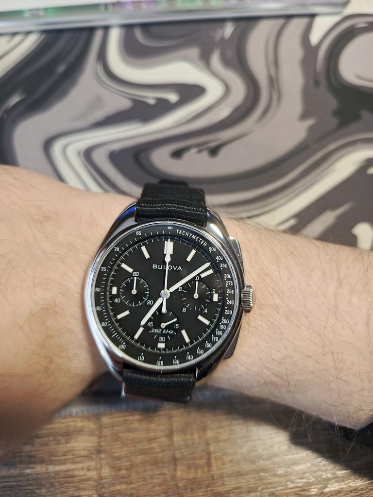 BULOVA Lunar Pilot Special Edition Chronograph schwarzes Zifferblatt Quarz 96A225 Herrenuhr