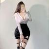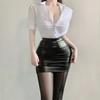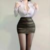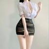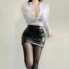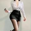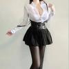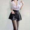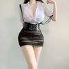 Sexy OL Sekretärin Uniform Cosplay Kostüm Lehrer Outfits Hemd Leder Minirock Anzug Rollenspiele Nachtclub Kleidung Halloween