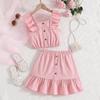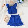 Citgeett Sommer Kinder Mädchen Rock Set Fly Ärmel Leibchen Elastische Taille A-linie Rock Outfit Feste Kleidung