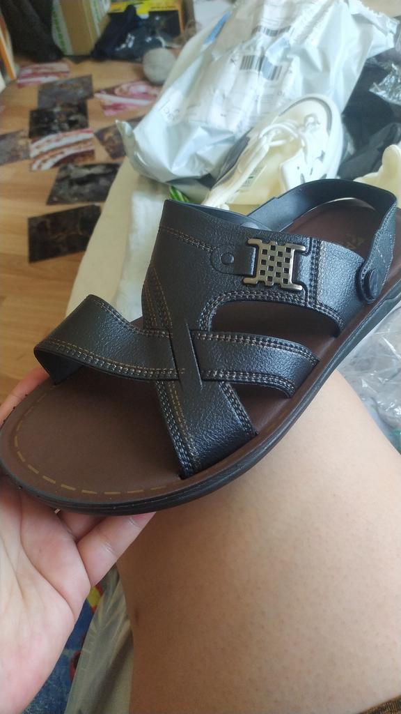 Die Größe ist erstaunlich auf den Punkt gebracht! 42. Angenehm für die Füße. Sie drücken nicht. Angenehm für das Bein. Das einzig Negative. Der hintere Riemen scheint nicht sicher zu sein. Es wäre besser, wenn an einer Kante beispielsweise ein Klettverschluss vorhanden wäre.