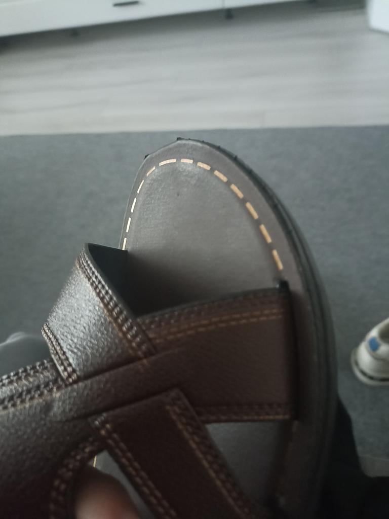 Die Sandalen sind nicht, wie beschrieben, aus Leder, sondern aus geformtem Gummi. Die Lederoberfläche und die Nähte sind gefälscht, aufgemalt.. Ich fühle mich betrogen.