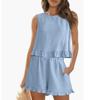 Modischer, sexy Zweiteiler mit Oberteilen und Shorts für Damen, ärmellos, hoher Halsausschnitt, plissierter Bauchanzug