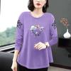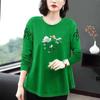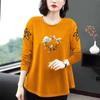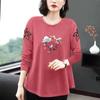 Großes, lockeres, langärmeliges, bedrucktes T-Shirt, Damenmode, Rundhalsjacke für Mütter mittleren Alters, Frühling und Herbst, koreanische Jacke für Mütter mittleren Alters