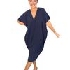 Stil und Komfort: Werten Sie Ihre Garderobe mit diesem schicken Damenkleid auf, das ein schmeichelhaftes V-Ausschnitt-Design und eine entspannte, lockere Passform aufweist, die verschiedene Körperformen ergänzt. Dieses Midikleid aus weichem und leichtem Polyestergewebe bietet Stil und Komfort für den ganzen Tag.
