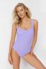 Pflaumenfarbener Badeanzug mit quadratischem Ausschnitt und normalem Beinausschnitt
