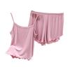 Was Sie sexy und charmanter macht, ist, dass das Mädchen-Sling-Pyjama-Set das ärmellose, einfarbige, rückenfreie, weite Bein und durchsichtige Trimmung hat.