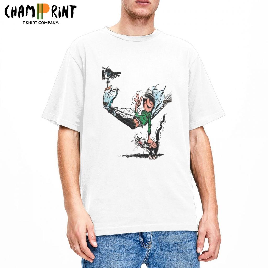 Gaston Lagaffe Comics T-Shirt Unisex Reine Baumwolle Lustiges T-Shirt Rundkragen T-Shirt Kurzarm Kleidung Geschenkidee
