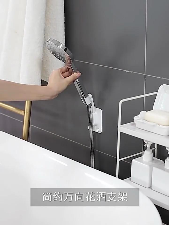 360° Duschkopfhalter, verstellbar, selbstklebend, Duschkopfhalterung, Wandhalterung mit 2 Haken, Ständer, SPA, Badezimmer, universell, ABS, 1 Stück