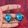 Blautopas Edelstein Handgefertigt Reiner Kupferdraht Umwickelte Ohrring Schmuck Für den Gedenktag