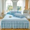 Dreilagiger Bettüberwurf aus Gazespitze, universelle Saisonbettwäsche, Tagesdecke, einfarbig, gerüschter Rand, staubdichte und rutschfeste Tagesdecke