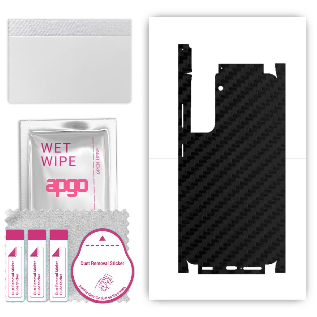 apgo Schutzfolie Skin Sticker für Rückseite+Seiten kompatibel mit Samsung Galaxy S21 5G, Full Wrap Folie Vinyl - Muster Carbon Schwarz