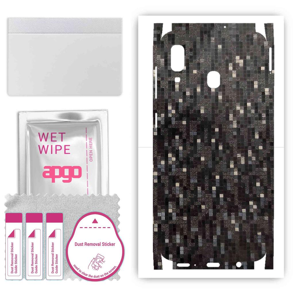 apgo Schutzfolie für die Rückseite+Seiten kompatibel mit Samsung Galaxy A20, Full Wrap Folie, Vinyl - Muster Carbon Black Pixel