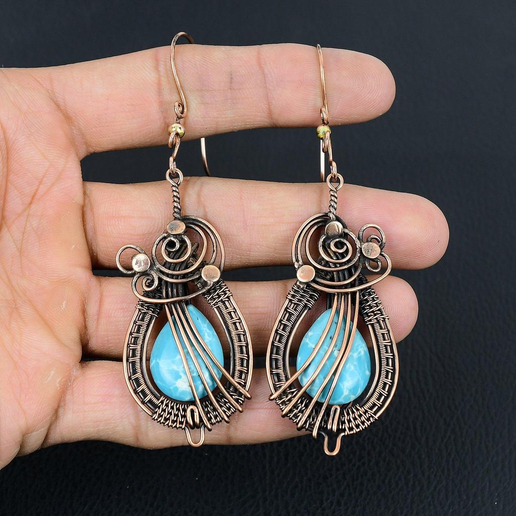Larimar Edelstein Handgefertigt Reiner Kupferdraht Umwickelte Ohrringe Schmuck Für den Gedenktag